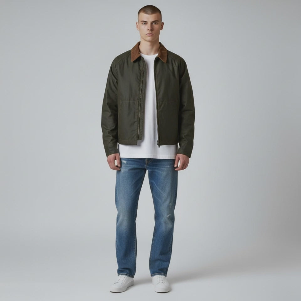 Die „Carter“ von Brixtol Textiles ist die pointierte Antwort auf alle, die eine moderne, etwas kürzere Wachsjacke suchen – klar im Design, funktional im Alltag. Das tief dunkle Oliv wirkt zurückhaltend und gepflegt, ohne plakative Markenlaute. Das gewachste Bio‑Baumwollgewebe schützt zuverlässig vor Niesel und Wind und entwickelt mit der Zeit eine charaktervolle Patina – genau jener dezente Heritage‑Charme, den man sieht, wenn man genauer hinschaut.