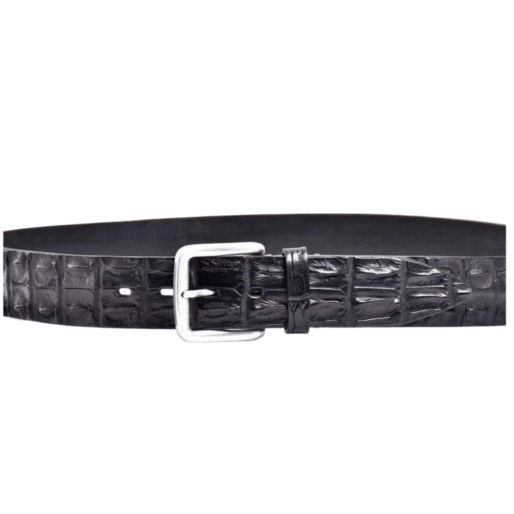Der Fausto Colato 3390 ist ein Klassiker bei uns: ein Gürtel aus Krokorücken‑Leder, der die naturgewachsene Struktur des Rückens zeigt – reliefartig, lebendig und unverwechselbar. In Schwarz ist er maximal vielseitig: Er passt zu gepflegter Denim, Chinos und leichten Wollhosen und wirkt souverän, ohne aufdringlich zu sein. Die Rückenpartie des Krokodils zählt zu den robustesten Bereichen; sie verleiht dem Gürtel Stabilität und einen eigenständigen Charakter, der mit der Zeit eine feine Patina entwickelt.