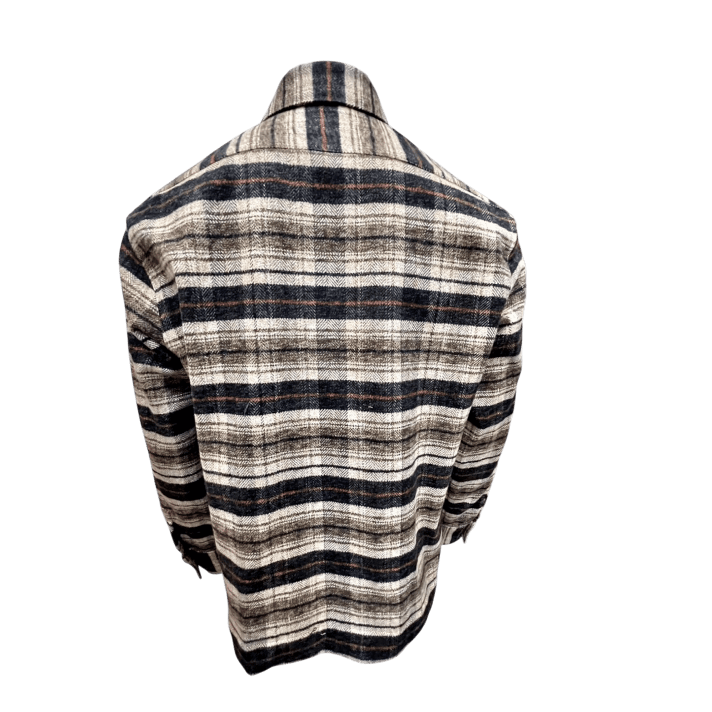 Baumwoll Overshirt von Xacus mit Karo in Braun & Beige. Hoher Kragen, Brusttaschen, Made in Italy – UNIT Hamburg.