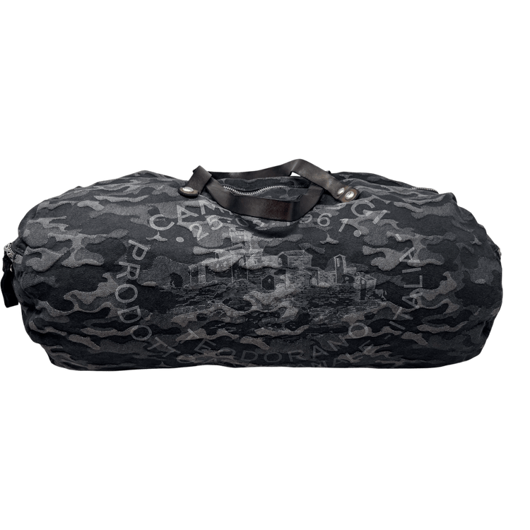 Campomaggi Weekender aus softem Camouflage-Canvas in Schwarz/Grau/Blau mit Schlammleder-Details. Handgefertigt, robust und einzigartig – nur bei UNIT Hamburg